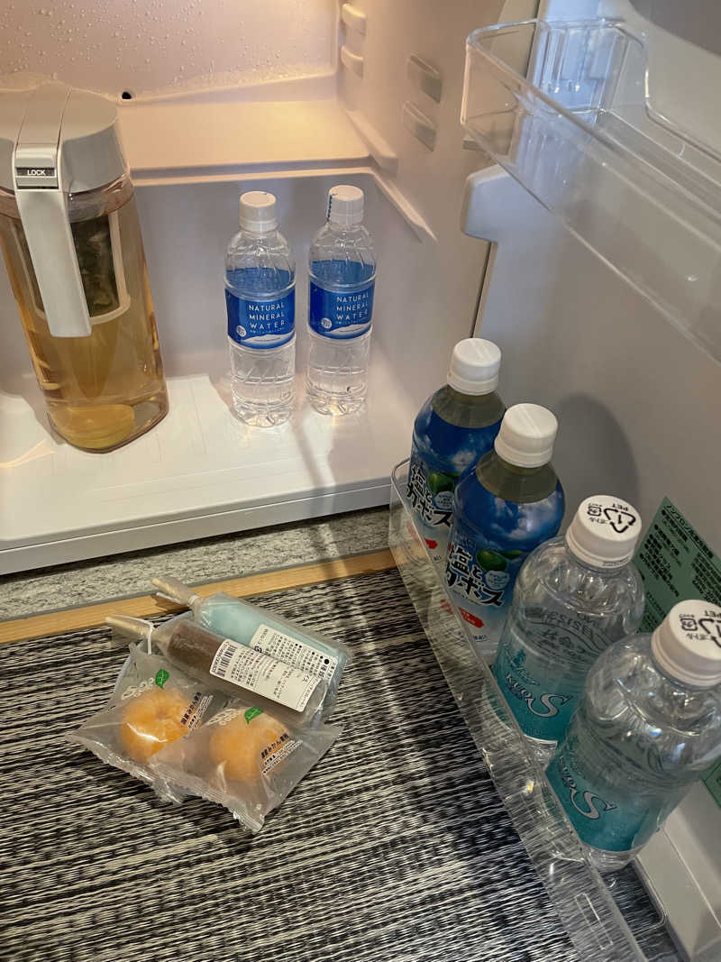 チェックインを部屋でやってくれるとのことで早速案内いただく。廊下も部屋も畳張りの温かみのある館内。簡単に説明を受けて、さっそくサウナラウンジへ潜入。大浴場とは別に、宿泊者専用で予約できる貸切のサウナスペースで、今回利用するのは「楊貴妃」の部屋。サウナ、水風呂、シャワーブースだけじゃなく、洗面台、テレビ、くつろぎスペース、はてはベランダにととの椅子まで完備。冷蔵庫には十分な飲み物とアイスまで。タオルもバスタオル、フェイスタオルが2セットずつ、サ室内にはサウナマットと敷き用のバスタオル2セットずつと至れり尽くせり。ちょっと待って、これ自分の部屋に戻れなくなるやん?
