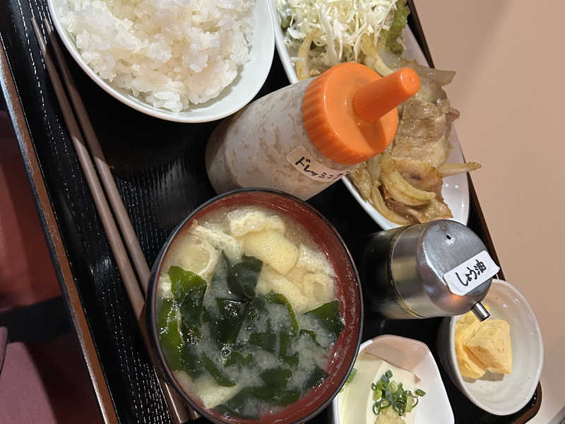 風呂上がり17時ぴったり食堂でしょうが焼き定食