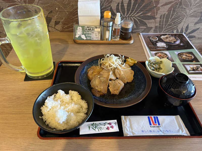 外気浴できれいな空を眺めたい。そんな一心で「大人の秘密基地」へと足を運んだ。ここは空に1番近づくことのできる、まさに「天空のアジト」なのだ。11時の熱波に合わせてin。5分前には満員になっていた。優しい雰囲気の方で雑談を挟みながらゆる~い感じでのんびりと。祝日の昼間だなあと実感し、心も身体も休めることができた。サ飯はもちろんチャーシュー定食とどデカいオロポ。うんっまい。