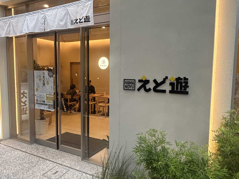 休憩場所は半外気浴、外からは電車の音と繁華街の焼肉の匂い、そして音楽が鳴っている