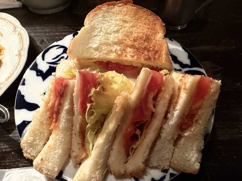プリン🍮が先に出てきてその後にBLTサンド🥪を食べる😋