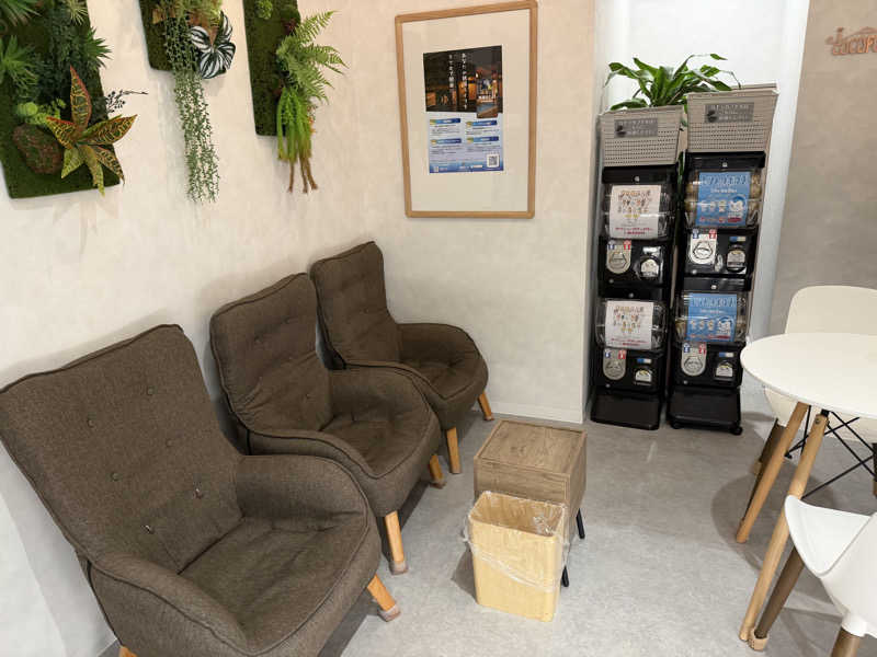 休憩所で寛ぎながら楽しみにしていた健康ジュースを飲む🥬