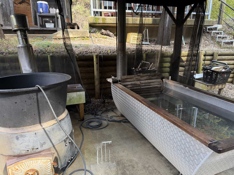 浴槽にお湯が注がれる音、湯かけのための水だめに注がれる噴水⛲️の音が心地よい😊