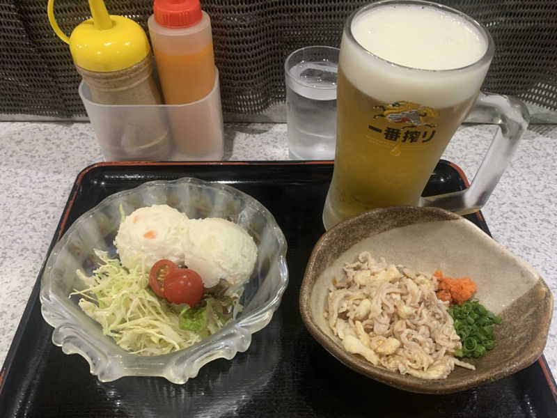 新幹線内で晩酌してきたが、せっかくなので3階食事処でおつまみセットのみいだだいてから就寝😴