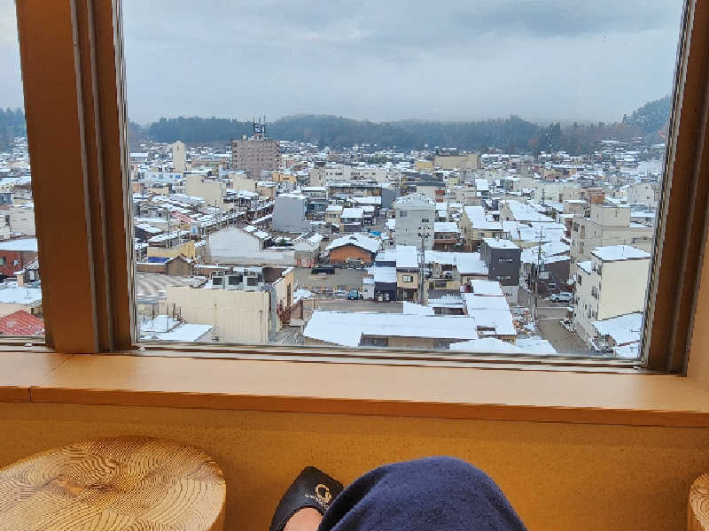 男女入れ替え制で昨夜とは違うところで朝ウナ。こちらも清潔で明るい空間。外気浴スペースからは雪に覆われた高山の町並みを眺めることができる。外気温が0℃くらいなので、サウナチェアに寝転がると、全身から湯気がもくもく。寒いのに気持ちいいから不思議だ。