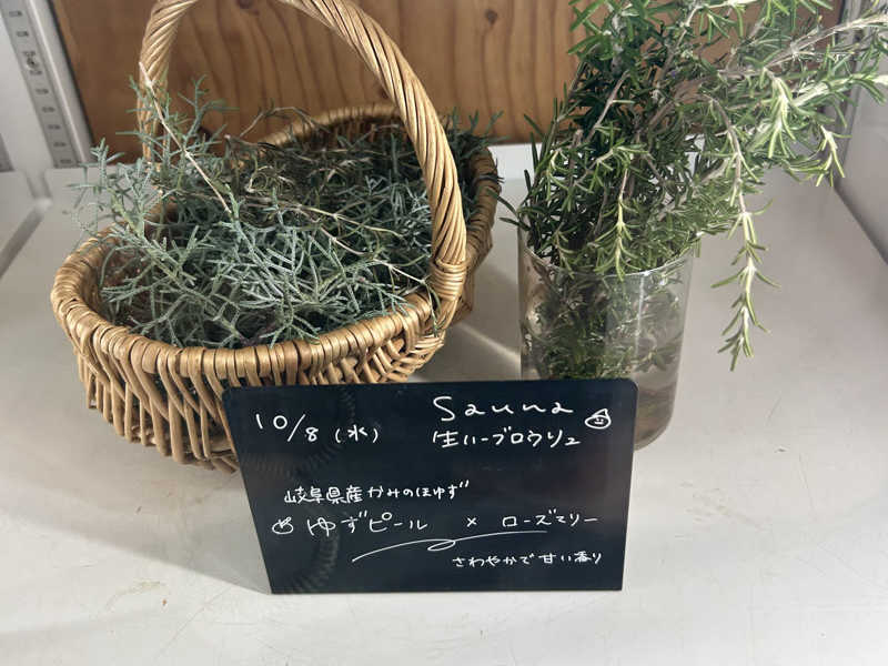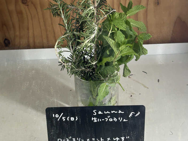 よもぎの炭酸泉で下茹で、サ室の生ハーブから水風呂のプランターハーブを優しく擦り香りをしがむ、安定の幸せをありがとう😊