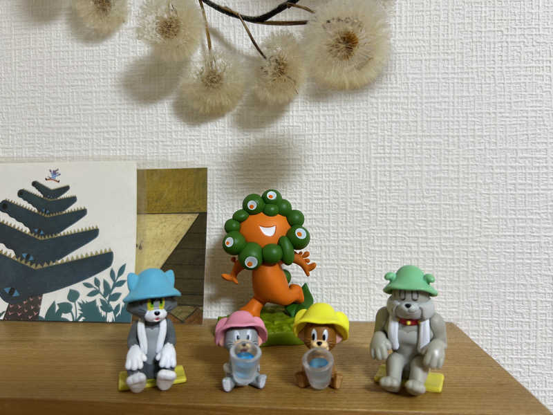 サウナ絡みのガチャ、今はトムとジェリーにはまり中🐈🐀被らずに3種類集めたが、一回400円💸重複リスクを考慮し多少割高でもメルカリ活用の術を知る、便利な世の中、あー、サウナハットの耳のところが癒される🫶