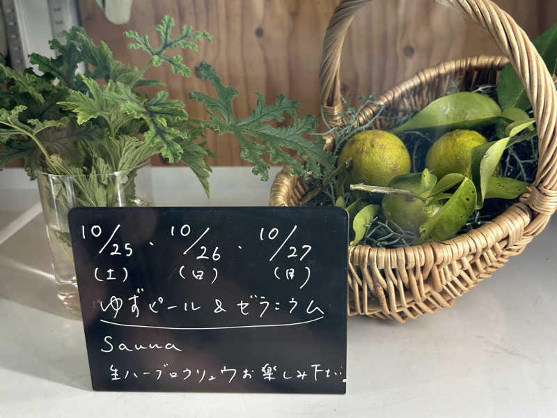 入って左手に『ハーブ蒸留所』のレイアウト変更を確認、モアハーブデイに向けて何があるのかしら?🌿生ハーブは脱衣所前でなく玄関の方の写真を撮ることにしている、サ活後は脱力しており忘れちゃうので👴