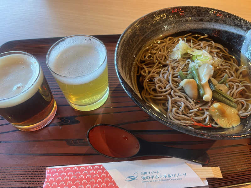 外気浴は露天風呂脇の足がお湯に浸かれる椅子。お湯もキラキラ、白樺湖もキラキラ。目をつぶっても目の奥がキラキラ。