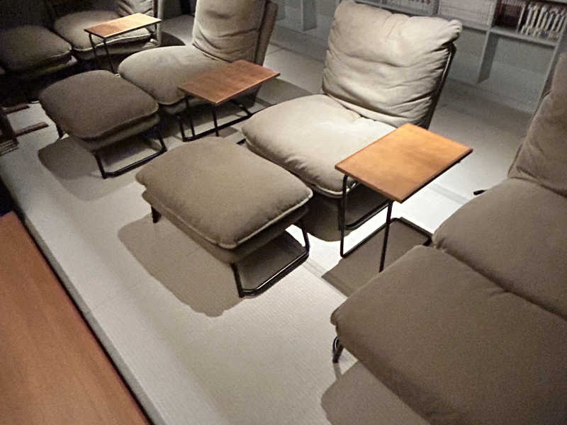 洗われた心で2階休憩スペースでサ活のメモをしていましたら唐突にエンドレスクシャミ発動