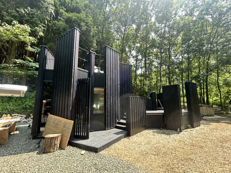 黒色の木板が織りなすモダンなデザイン水風呂も一体型