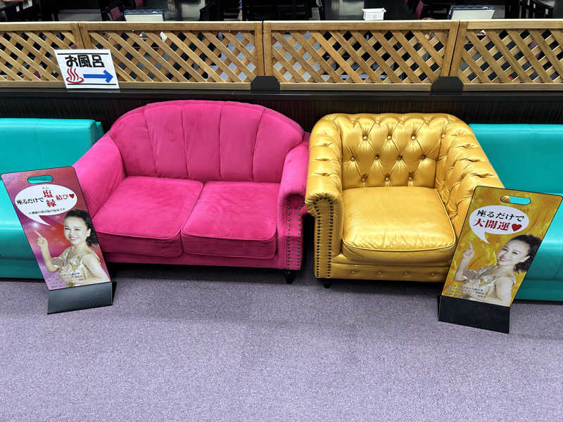 受付を済ませ一旦ゴールドの大開運ソファで小休止、座りたいだけです