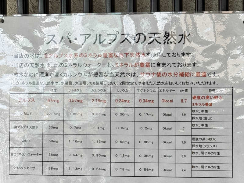 アルプス同様、飲める水風呂で