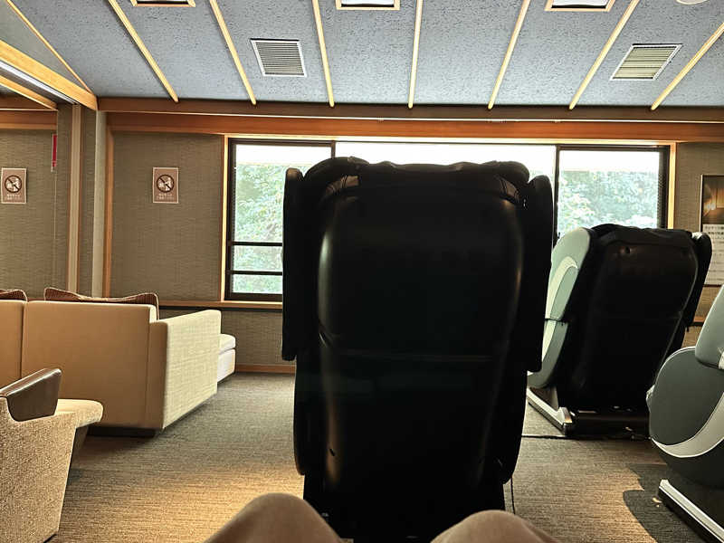 休憩してから入ろうと受付に行くと、人が多くて、入場規制もかかり、ごった返している。宿泊者はそれでも入れるので、受付。…そういえば、この辺りで三社祭あったんだった。終わってやってきたんだろうと思われる子ども〜大人。大浴場は芋洗い状態。ササッとサウナに逃げ込んで、そこからは部活。サウナ、水風呂、内気浴。女子側は内気浴用の椅子が2つしかなく、大浴場も芋洗いで椅子が空いておらず、たまに内気浴難民となり、長め水風呂からのサウナへ直行パターン。