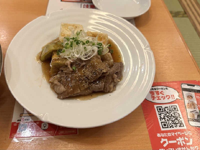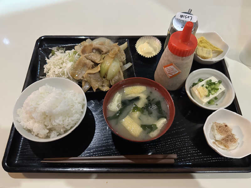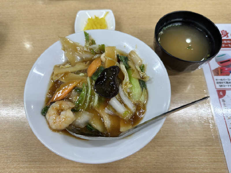 まずは大広間でご飯。何度も頼んでいるけど、結構気に入っているミニ中華丼。野菜たっぷり入っていて、罪悪感なく食べれる。自分の舌には合っている味。途中から、お酢をたっぷりかけて、食べた。ミニシリーズがもっと増えたら嬉しい✨600円台で味噌汁、お新香付いて、お値段がリーズナブルなのも嬉しい。