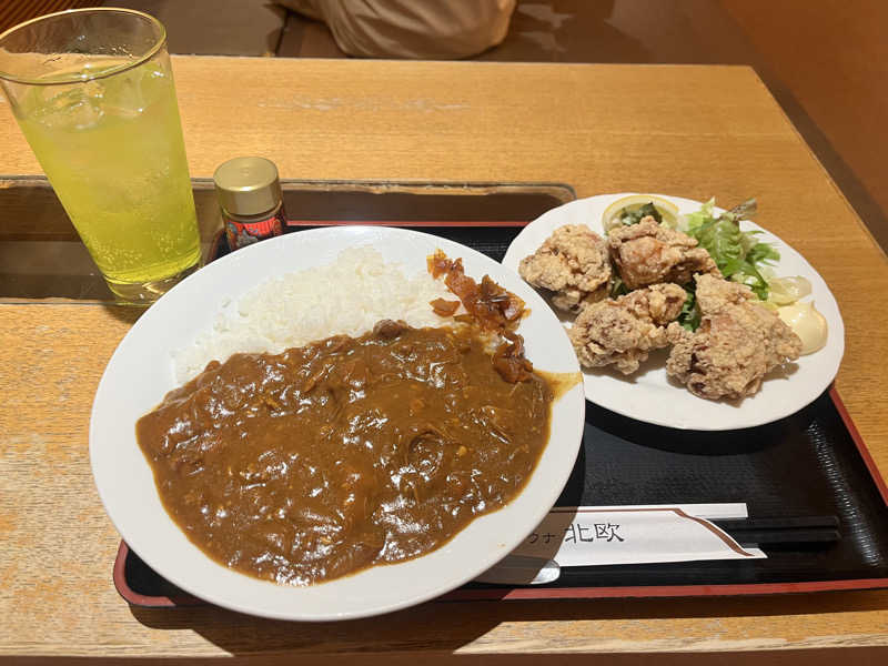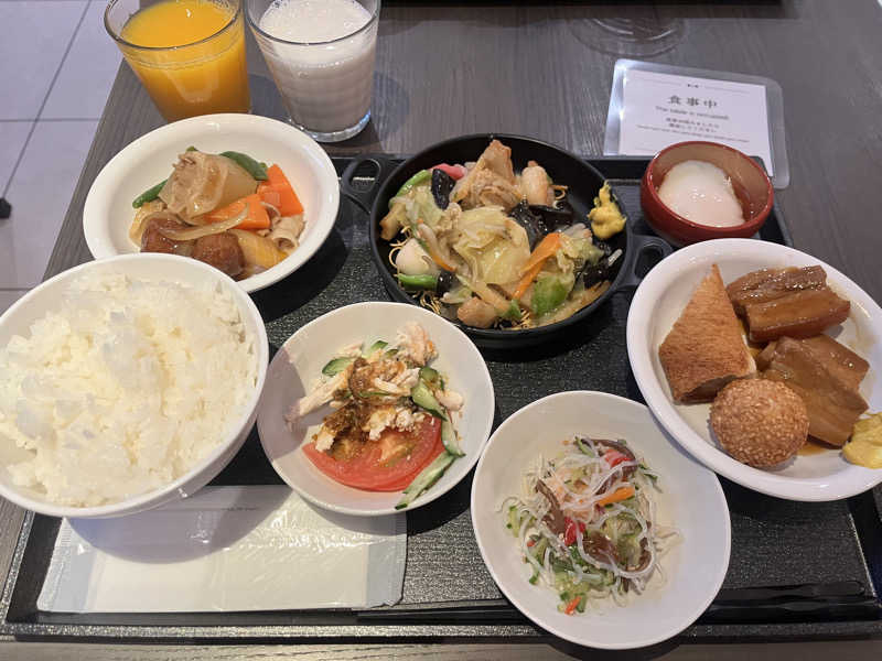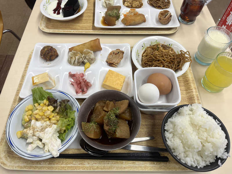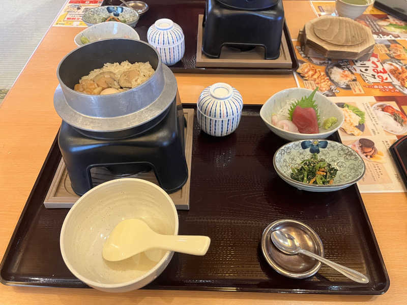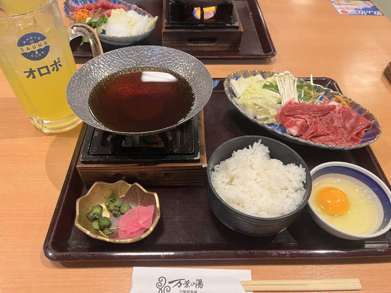 今日はヒノキの輪切り風呂をやっているので、まずは軽くお風呂に入って暖まる。その後着替えて腹ごしらえ。万葉の館内着は着ると何故か落ち着くんだよなぁ。家のパジャマより落ち着く気がする…笑