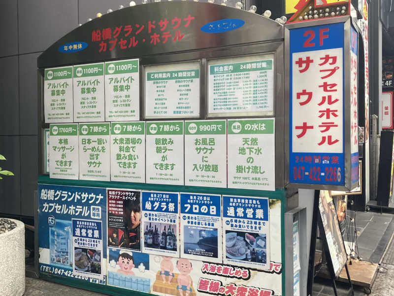 船橋だとサウナはジートピア、食事はグランドサウナかな