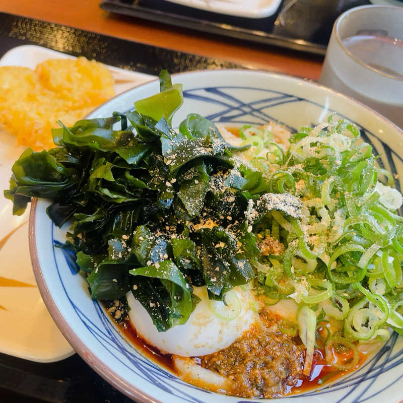 わかめ、ネギ、ごま、ラー油 カレイの天ぷら