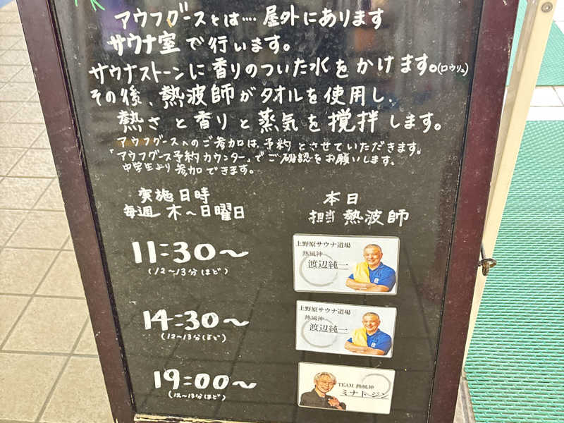 受付でテントサウナ予約して、その間に渡辺支配人のアウフを受ける