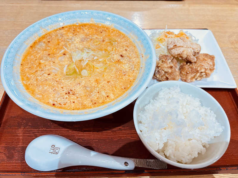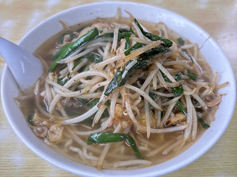 テントサウナを楽しんでいる間、二人共空腹で終了後、即食堂へ。あねタンラーメン美味い!