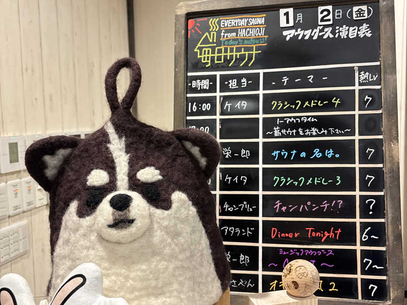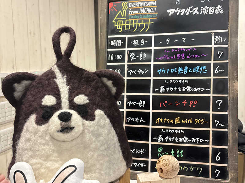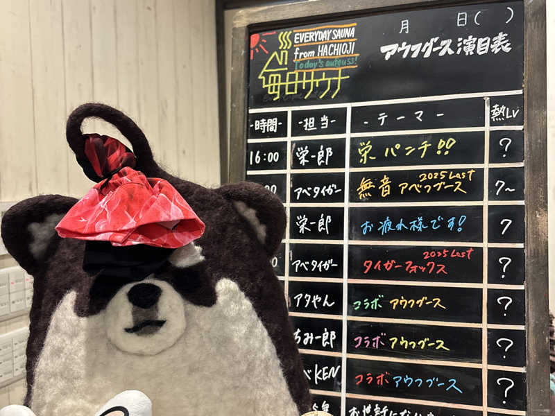 サ慣らしでkumaロウリュ。声掛けで拍手が起こり笑いが発生する😂サ室は默浴だけどこういう一体感はいいなぁ👍