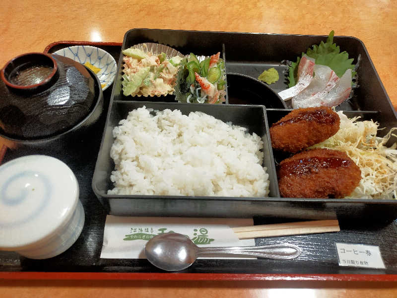 木曜は他のサウナが休みのためこちらへ ここはサウナ室が広いから混み合わず快適 大きく注意書きがしてあって、マナーも良い。 しばらくぶりに来たら、露天風呂に置いてあった木のベンチが、プラスチック椅子5脚に変わってた。 内と外に合わせて8脚のイスは嬉しい お食事所のメニューが豊富 日替わり定食はコーヒー付きコスパ◎