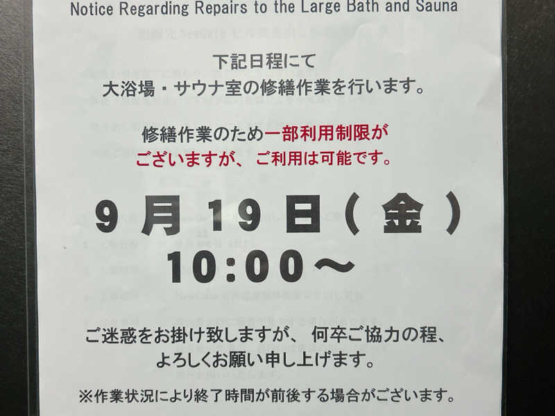 なんか明日19日は修繕工事作業あるみたいですね