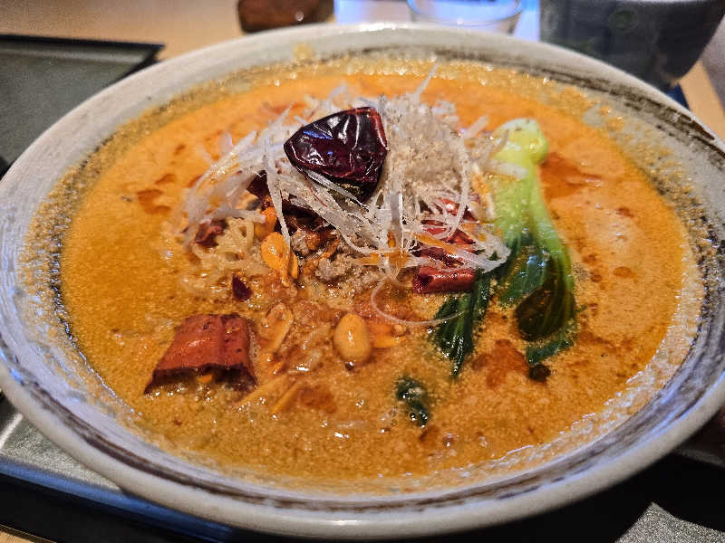 坦々麺 激辛スコーピオントッピング。辛さの中に旨みあり系ラーメン。結構辛いので次はスコピ無しもありか