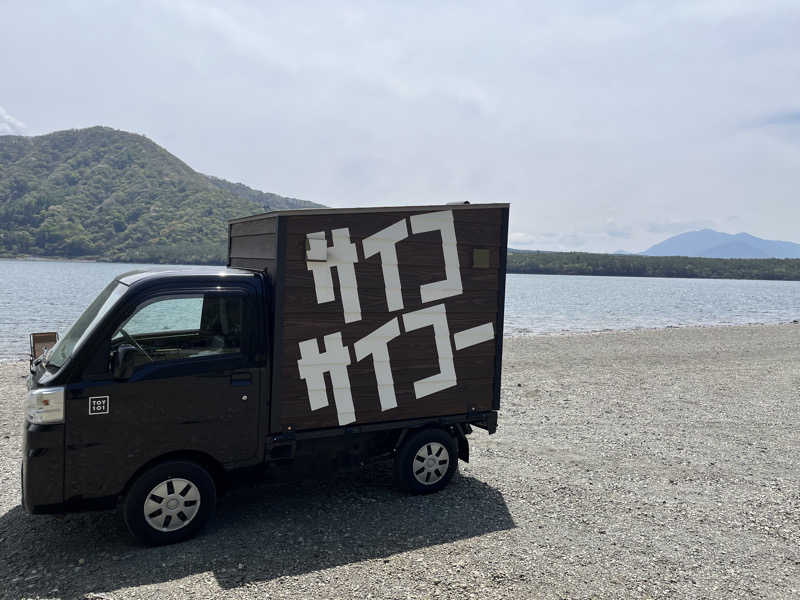 軽トラの荷台を利用した移動式のサウナですがサウナストーブが設置されていて詰めたら四人は入れるしっかりサウナ。セルフロウリュももちろん出来ました!