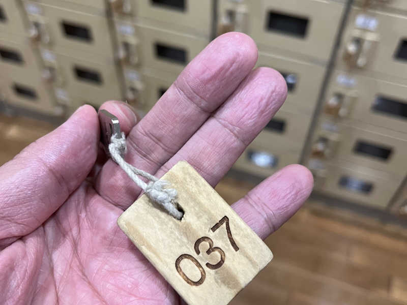 ビルの地下階にあり、靴箱の鍵に付いてるバーコードで一貫管理するシステム。