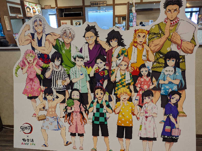 お子様で浴室内は混んでいて、鬼滅人気を認識
