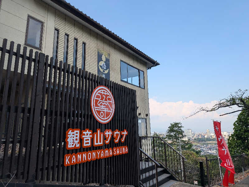 祭りの喧騒をよそに駅からバスで揺られること30分、大きな観音の見える山頂にそのサウナはありました。