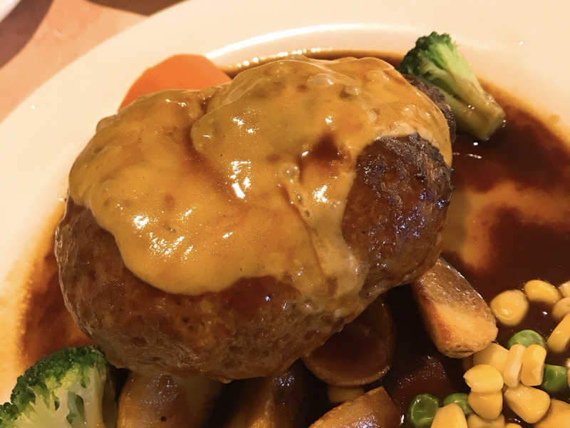 サ飯はおっきいチーズハンバーグ❤️最高〜!