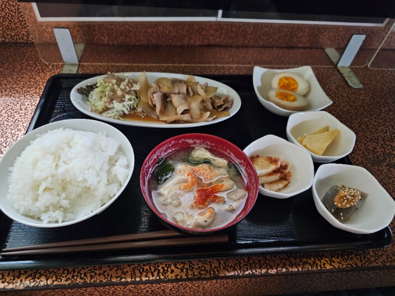 腹ペコの時は焼き肉定食だねそして今日は煮卵もプラスしてがっかり食べた