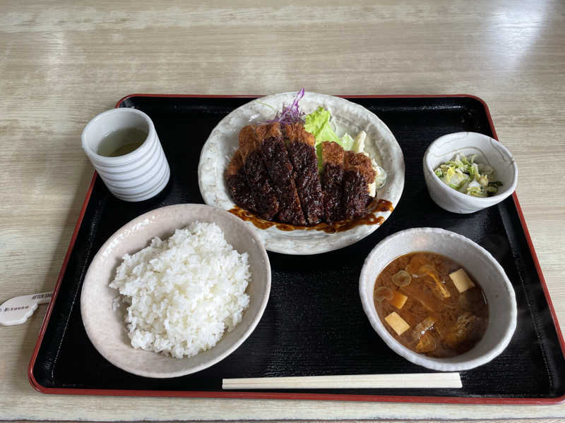 サウナ飯は明勝へ。腹ペコにみそかつ定食がすすむ。