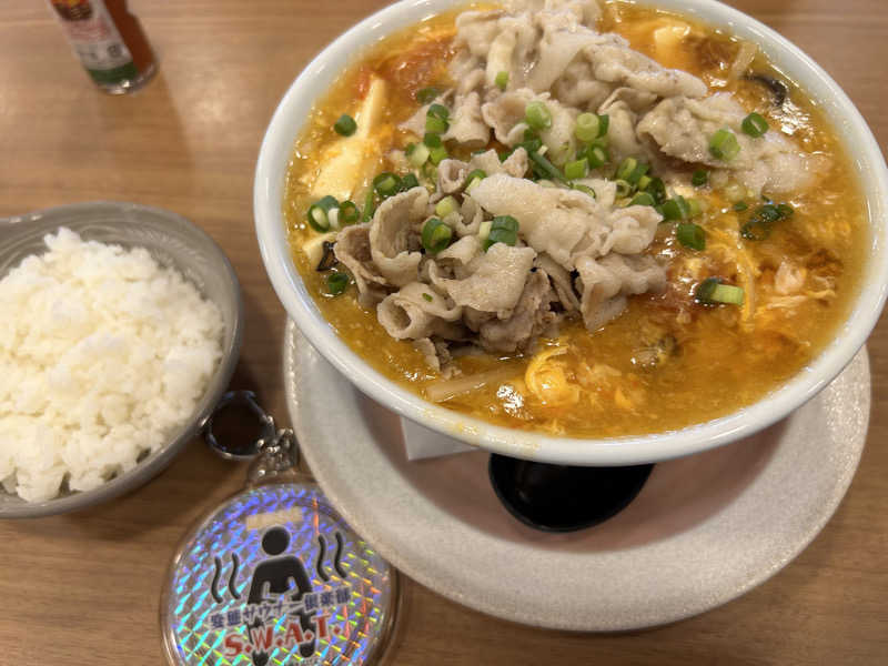 ②2階で昼飯🍜たまたま隣にしゃけのこ🐟🐢のお二人。昨日ぶりですとご挨拶😊
