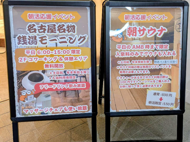 平日AM8時までに入館するとサウナ料金300円無料🙌