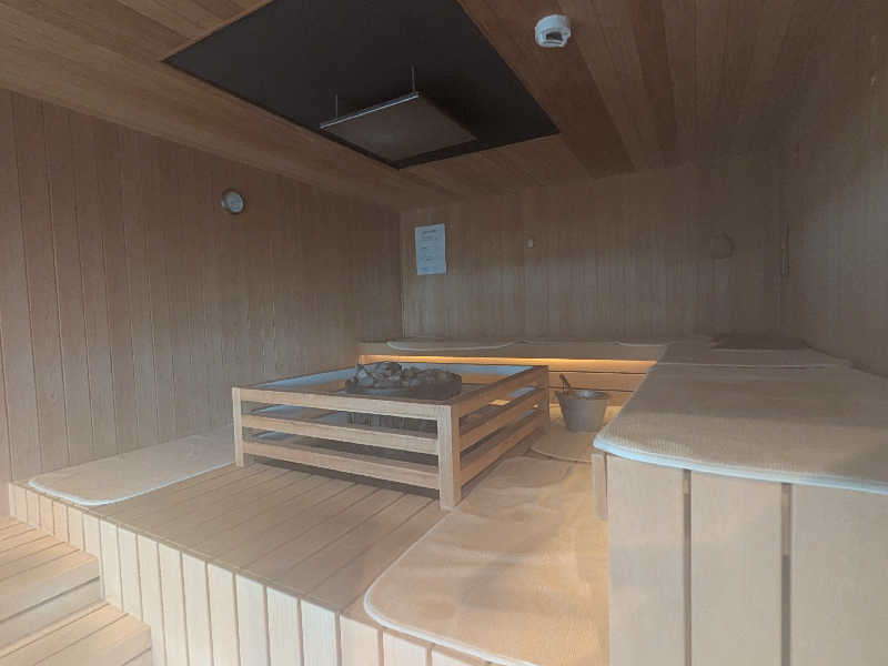 🐕️と一緒に泊まれてサウナもある宿泊先を探していましたらヒット!久々に🐕️連れプチ旅行へ(^^) 若狭ビーチに面したお洒落な雰囲気のfuuさん。新しい施設なので全てがとても綺麗です。BBQを楽しめるベランダやジャグジー、ネトフリやアマプラなどほぼほぼ網羅したTVにプロジェクターなどなど快適装備満載で嬉しい。さて肝心のサウナですが熱心なサウナーには刺さらないかな(^_^;) 導線が少し悪くて1階にサウナと浴室があり、休憩できるスペースは2階、水風呂は無いので浴槽に水を張って水風呂の代わりに(^_^;) サ室は3人くらい入れる広さで海が見える最高の雰囲気。任意で温度設定できますがMAXの110℃でも少し物足りない。もうちょっと熱くなれば最高ですがセルフロウリュ可能なので湿度上げてしっかり蒸されました。水風呂代わりの浴槽も冷たい水が手でくれてホッとしました。サウナメインで訪れるより家族や仲間とゆっくりした時間を楽しむ目的なら最高の施設でした!