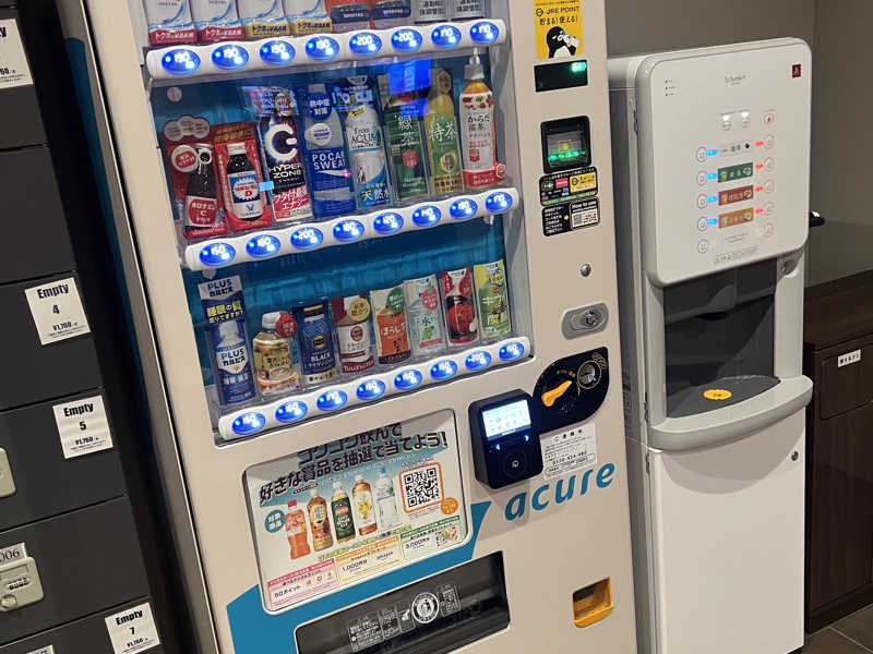 ここの1番の驚きは更衣室になんとドリンクバーが設置されており、アクリ(アクエリアス&リアルゴールド)が飲み放題!これはありがたすぎる。