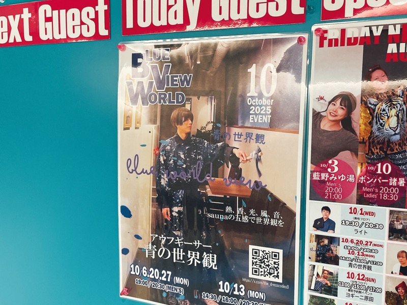青いサウナ(イベント時)なのにサウナは灼熱です。綺麗なサウナでアウフグースしていて、こちらもすごく楽しませていただき経験をありがとうございます。