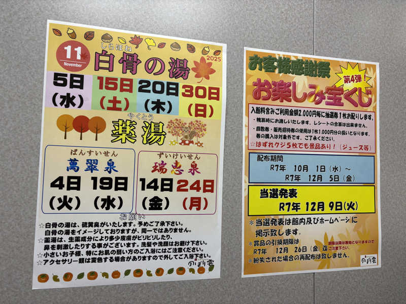 今日はイベント薬湯の日なので、のぼり雲さんに16時過ぎにチェックインです。