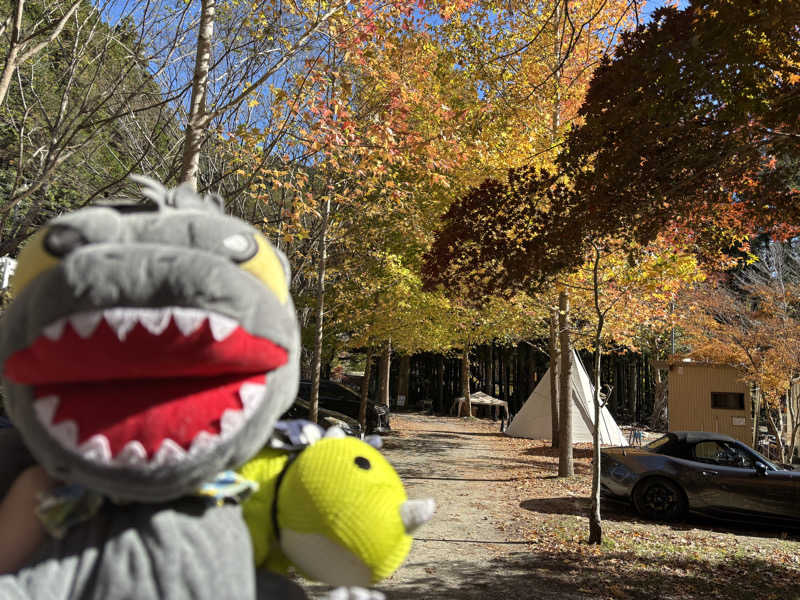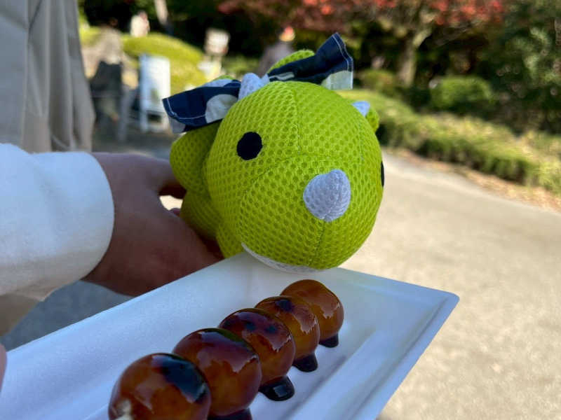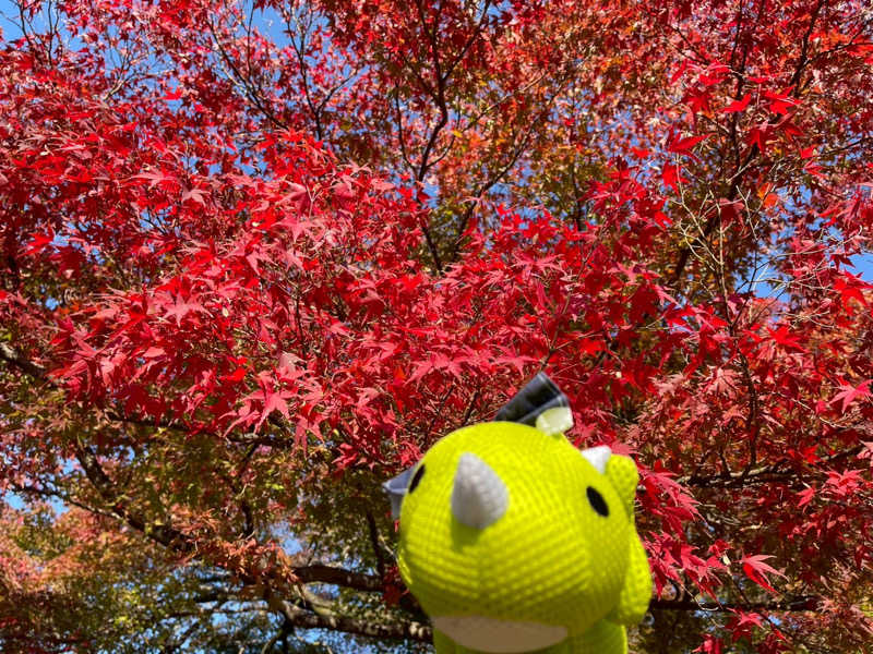 また散策途中に恐竜が名城公園内でかくれんぼを始めてしまい、紅葉の葉に混じってわからなくなりました。とりー!