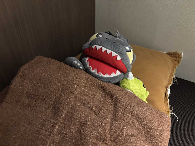 カプセルホテルで爆睡怪獣しましたがお。ただカプセル内は暑くて、ちょっと寝やすい感じではなかったがお。騒音もまーまーあったから、たぶん夜中に別の怪獣が来て、火を吹いて困らせていたのかもしれないがお。