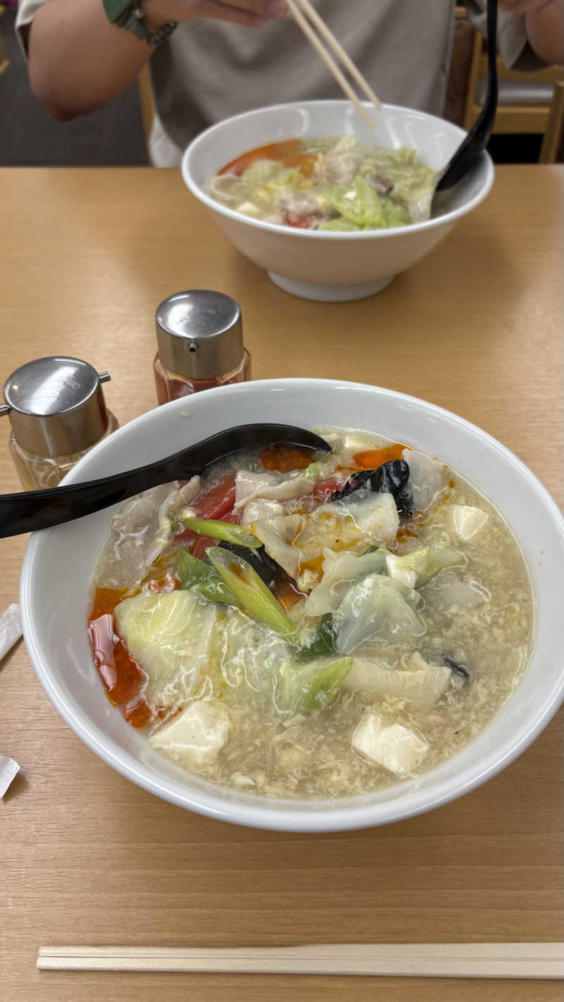 サウナ飯 (トマト酸辣湯麺、手作りコロッケ、ジャンボ餃子)