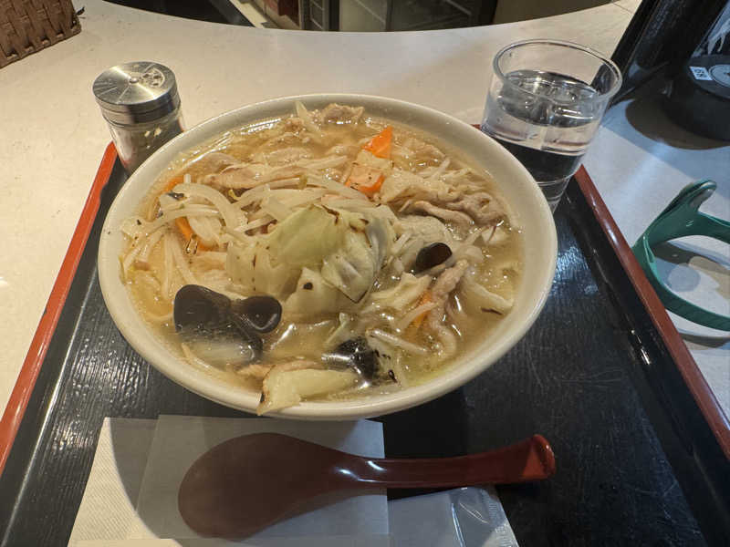 3Fで食事、ロウリュ麺辛さ半分オーダーは🙅♀️と言われてタンメンいただく😋