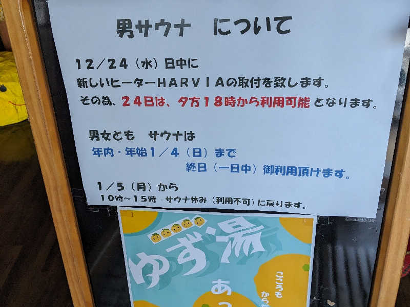 サウナストーブ壊れたみたいで容量小さいので稼働の為MAX80℃位との事と張り紙が😅 せっかく来たので入店💡 サウナ温度計は82℃いつもより温いが思ったよりは汗出たから良かった💦 ストーブ見てみるとHARVIAのストーブだ🔥 でもやはり温度は低いので容量アップしたHARVIAのストーブに変われば良いな😎 20日頃に変更予定みたいなので楽しみ😊