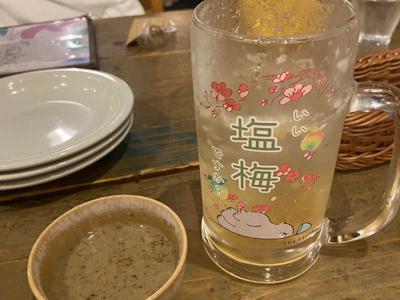 4セット目の休憩は幅広ベンチで仰向けに。あまみ全開。合計5セット堪能して締めはやっぱり薬草風呂。唯一無二の香りに癒される。サウナ上がりは2階で食事🍽️