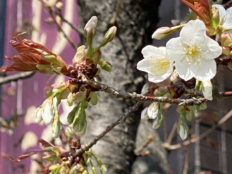 游心の湯♨️の角にある山桜が、咲き始めましたよ🌸