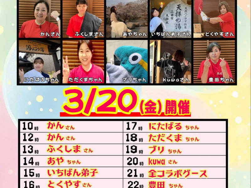 (ブリさんのご主人が、今日男湯で18時と20時をあおいだそうですよ!ステキなご夫婦ですね💓)