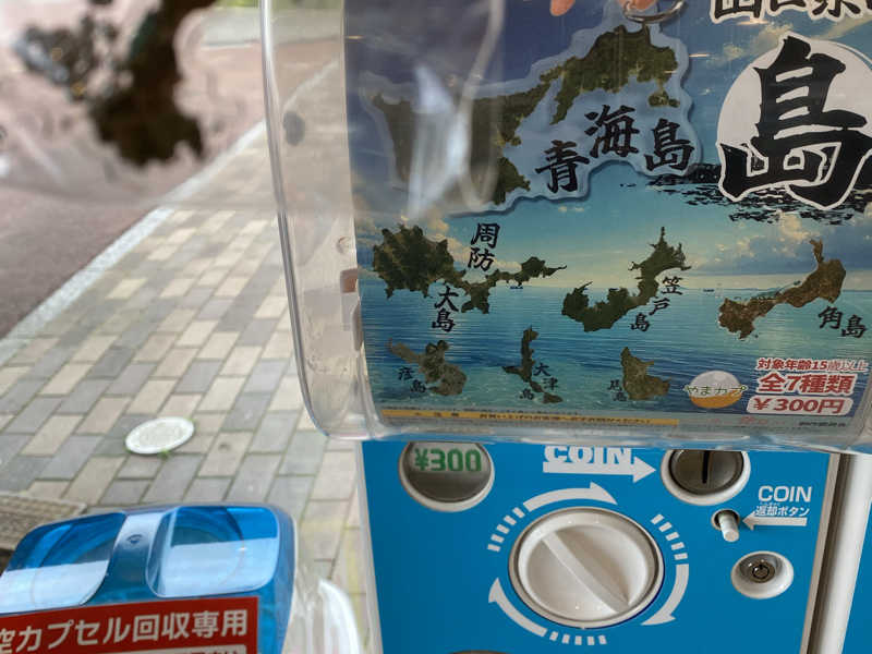 サウナ後お腹空いたので、センザキッチンへ行って、しらすが飛び出た山賊おにぎり食べて、山口県の島ガチャ引いて「角島」ゲット😄